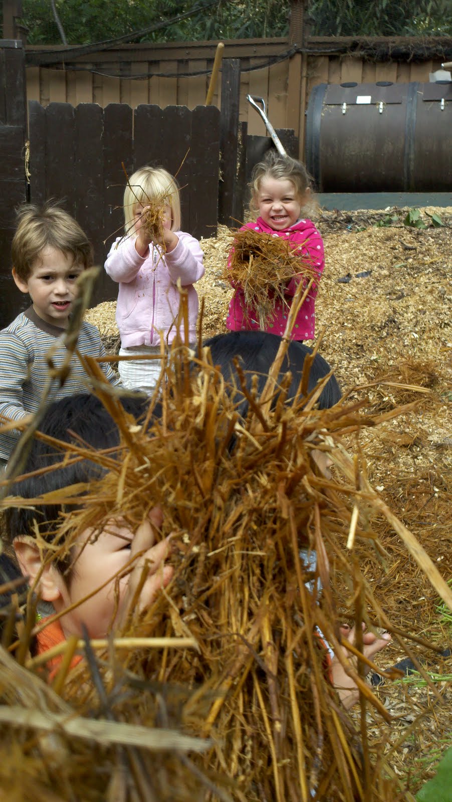 Students build "bugs" from edibles picked at the Anneliese Schools' Willowbrook Campus garden during the "Daddy & Me: Bug Detectives" class.
